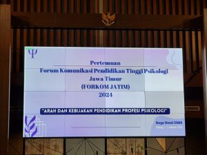 Kamis-Jum’at, 1-2 Februari 2024 bertempat di Hotel Rayz UMM Hotel Malang, pengurus baru FORKOM JATIM mengundang dekan dan kaprodi Psikologi dari berbagai perguruan tinggi anggota FORKOM JATIM. Kegiatan perdana ini berusaha memfasilitasi pimpinan perguruan tinggi untuk bersama-sama menyikapi pelaksanaan pendidikan di kampus masing-masing agar sesuai dan tidak menyalahi undang-undang yang berlaku.